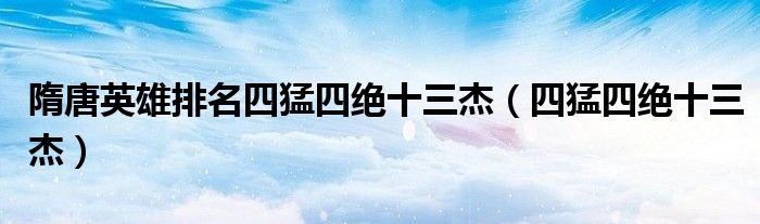 大家好,小金来为大家解答以上的问题。隋唐英雄排名四猛四绝十三杰,四猛四绝十三杰这个很多人还不知道,现在让我们一起来看看吧!