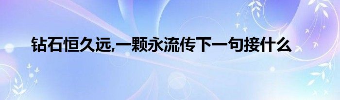 大家好,小金来为大家解答以上的问题。钻石恒久远,一颗永流传下一句接什么这个很多人还不知道,现在让我们一起来看看吧!