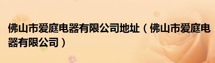 大家好,小金来为大家解答以上的问题。佛山市爱庭电器有限公司地址,佛山市爱庭电器有限公司这个很多人还不知道,现在让我们一起来看看吧!