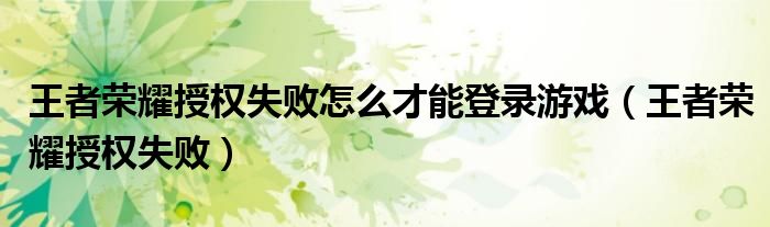 王者荣耀授权失败怎么才能登录游戏(王者荣耀授权失败),有没有人理理我?急需求助!