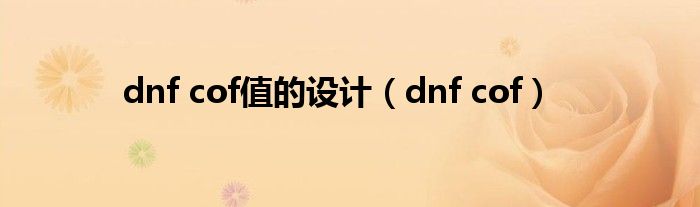 大家好,小金来为大家解答以上的问题。dnf cof值的设计,dnf cof这个很多人还不知道,现在让我们一起来看看吧!