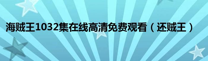 大家好,小金来为大家解答以上的问题。海贼王1032集在线高清免费观看,还贼王这个很多人还不知道,现在让我们一起来看看吧!