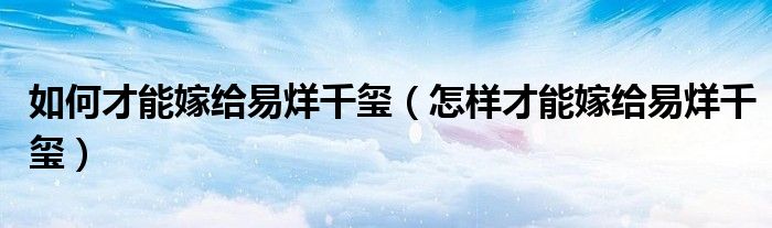 大家好,小金来为大家解答以上的问题。如何才能嫁给易烊千玺,怎样才能嫁给易烊千玺这个很多人还不知道,现在让我们一起来看看吧!