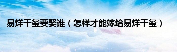 大家好,小金来为大家解答以上的问题。易烊千玺要娶谁,怎样才能嫁给易烊千玺这个很多人还不知道,现在让我们一起来看看吧!