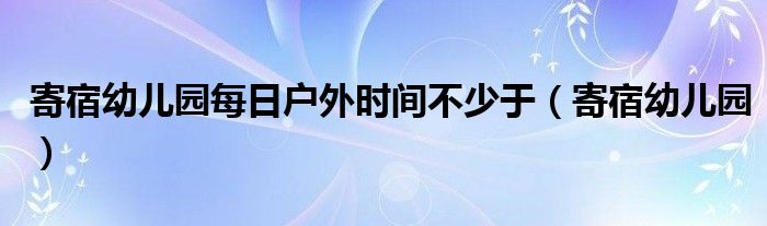 大家好,小金来为大家解答以上的问题。寄宿幼儿园每日户外时间不少于,寄宿幼儿园这个很多人还不知道,现在让我们一起来看看吧!