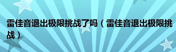 大家好,小金来为大家解答以上的问题。雷佳音退出极限挑战了吗,雷佳音退出极限挑战这个很多人还不知道,现在让我们一起来看看吧!