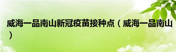 威海一品南山新冠疫苗接种点(威海一品南山),急!求解答,求此刻回复!