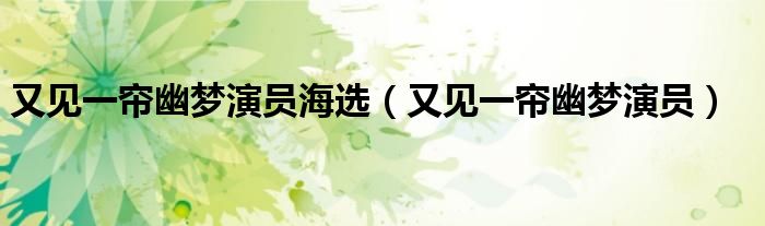 大家好,小金来为大家解答以上的问题。又见一帘幽梦演员海选,又见一帘幽梦演员这个很多人还不知道,现在让我们一起来看看吧!