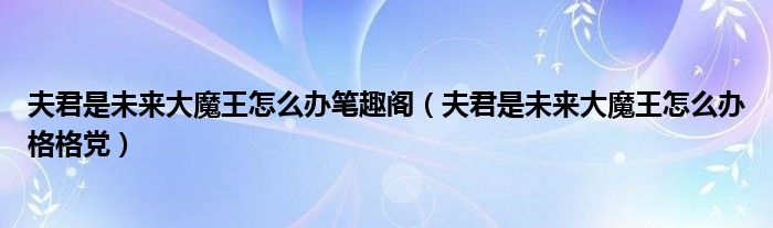 大家好,小金来为大家解答以上的问题。夫君是未来大魔王怎么办笔趣阁,夫君是未来大魔王怎么办格格党这个很多人还不知道,现在让我们一起来看看吧!