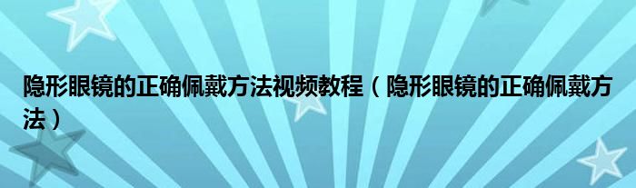 大家好,小金来为大家解答以上的问题。隐形眼镜的正确佩戴方法视频教程,隐形眼镜的正确佩戴方法这个很多人还不知道,现在让我们一起来看看吧!