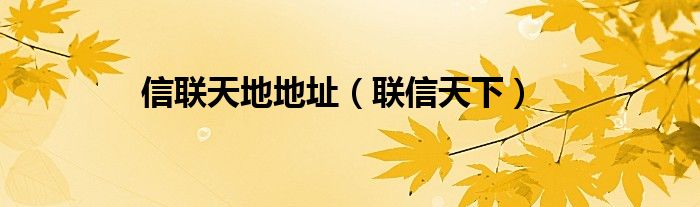 大家好,小金来为大家解答以上的问题。信联天地地址,联信天下这个很多人还不知道,现在让我们一起来看看吧!