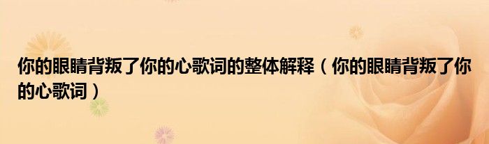 大家好,小金来为大家解答以上的问题。你的眼睛背叛了你的心歌词的整体解释,你的眼睛背叛了你的心歌词这个很多人还不知道,现在让我们一起来看看吧!