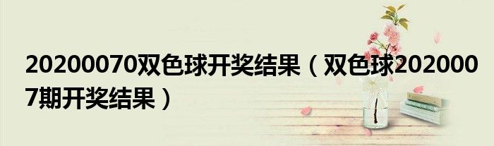 大家好,小金来为大家解答以上的问题。20200070双色球开奖结果,双色球2020007期开奖结果这个很多人还不知道,现在让我们一起来看看吧!